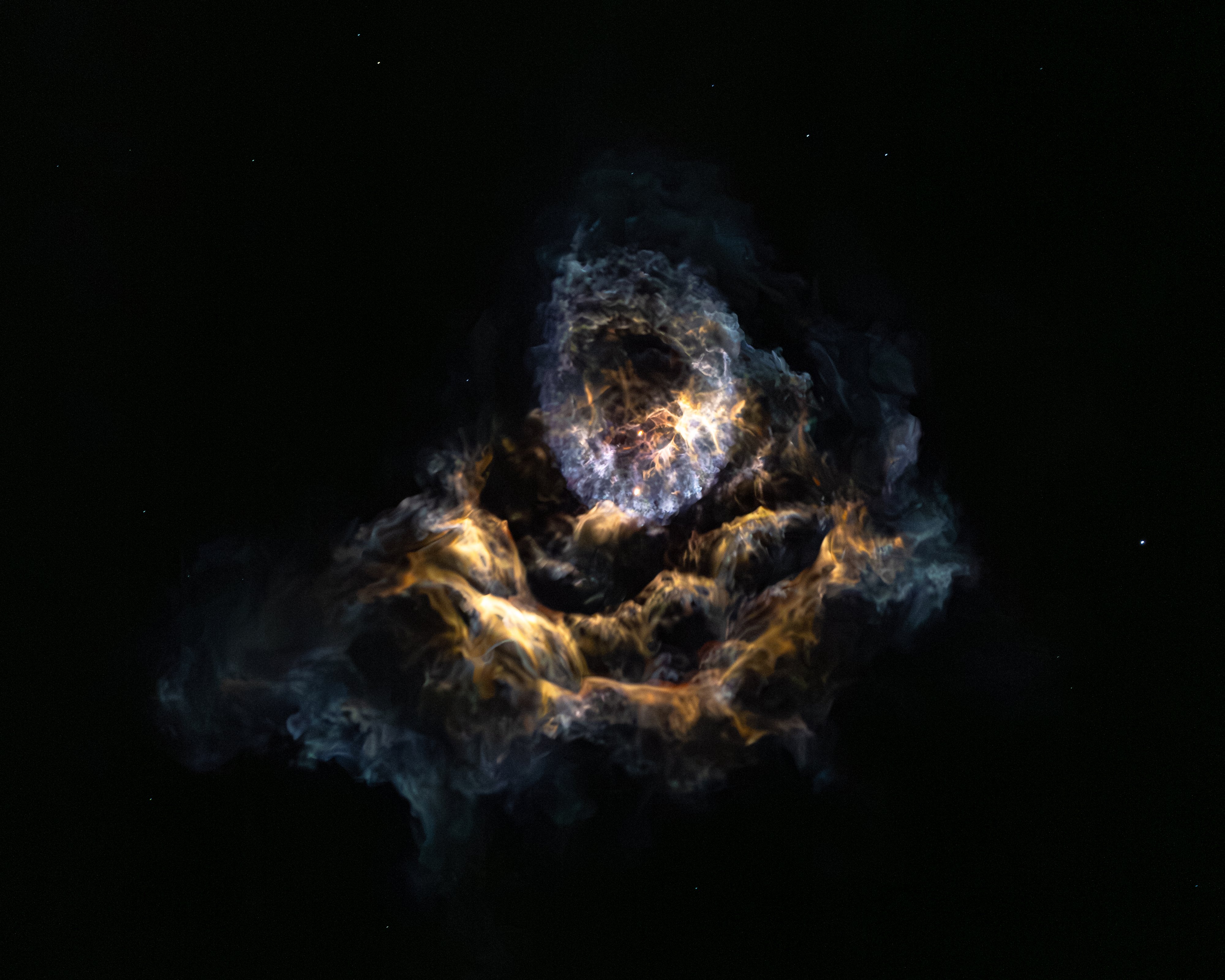 James Webb Uzay Teleskobu'nun uzak bir galaktik bulutsuya ilişkin en son görüntüsü olmayan bu aydınlatılmış gaz ve toz bulutu, 26 Ağustos'ta sabahın erken saatlerinde uzay kıyısındaki gökyüzü gözlemcilerinin gözlerini kamaştırdı. Fotoğraf, Uluslararası Uzay İstasyonu için yedinci ticari mürettebat değişimi görevi olan SpaceX Crew-7 görevinde bir Falcon 9 roketinin fırlatılmasından yaklaşık 2 dakika sonra çekildi. Karanlık gökyüzüne karşı aydınlatılan, ayrılmış birinci ve ikinci aşamadan gelen sürüklenen dumanları ve egzozu yakalıyor. Görüntünün merkezine yakın bir yerde konumlanan, düzensiz mavimsi halkanın içerisinde iki parlak ışık kaynağı bulunuyor. Altta yer alan Crew Dragon uzay aracıyla 4 insanı uzaya taşıyan roketin ikinci aşaması. Yukarıdaki parlak nokta ise, Dünya'da yer alan Cape Canaveral'daki İniş Bölgesi-1'e dönüş yolculuğu için kendisini yönlendiren Falcon 9 roketinin ilk aşama iticisidir.