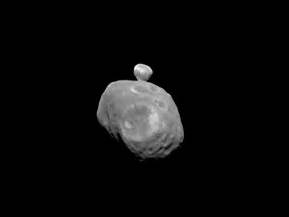 What if there were two moons in the sky -- and they eclipsed each other? This happens on Mars. The featured video shows a version of this unusual eclipse from space. Pictured are the two moons of Mars: the larger Phobos, which orbits closer to the red planet, and the smaller Deimos, which orbits further out. The sequence was captured last year by the ESA’s Mars Express, a robotic spacecraft that itself orbits Mars. A similar eclipse is visible from the Martian surface, although very rarely. From the surface, though, the closer moon Phobos would appear to pass in front of farther moon Deimos. Most oddly, Phobos orbits Mars so close that it appears to move backwards when compared to Earth's Moon from Earth, rising in west and setting in the east. Phobos, the closer moon, orbits so close and so fast that it passes nearly overhead about three times a day.