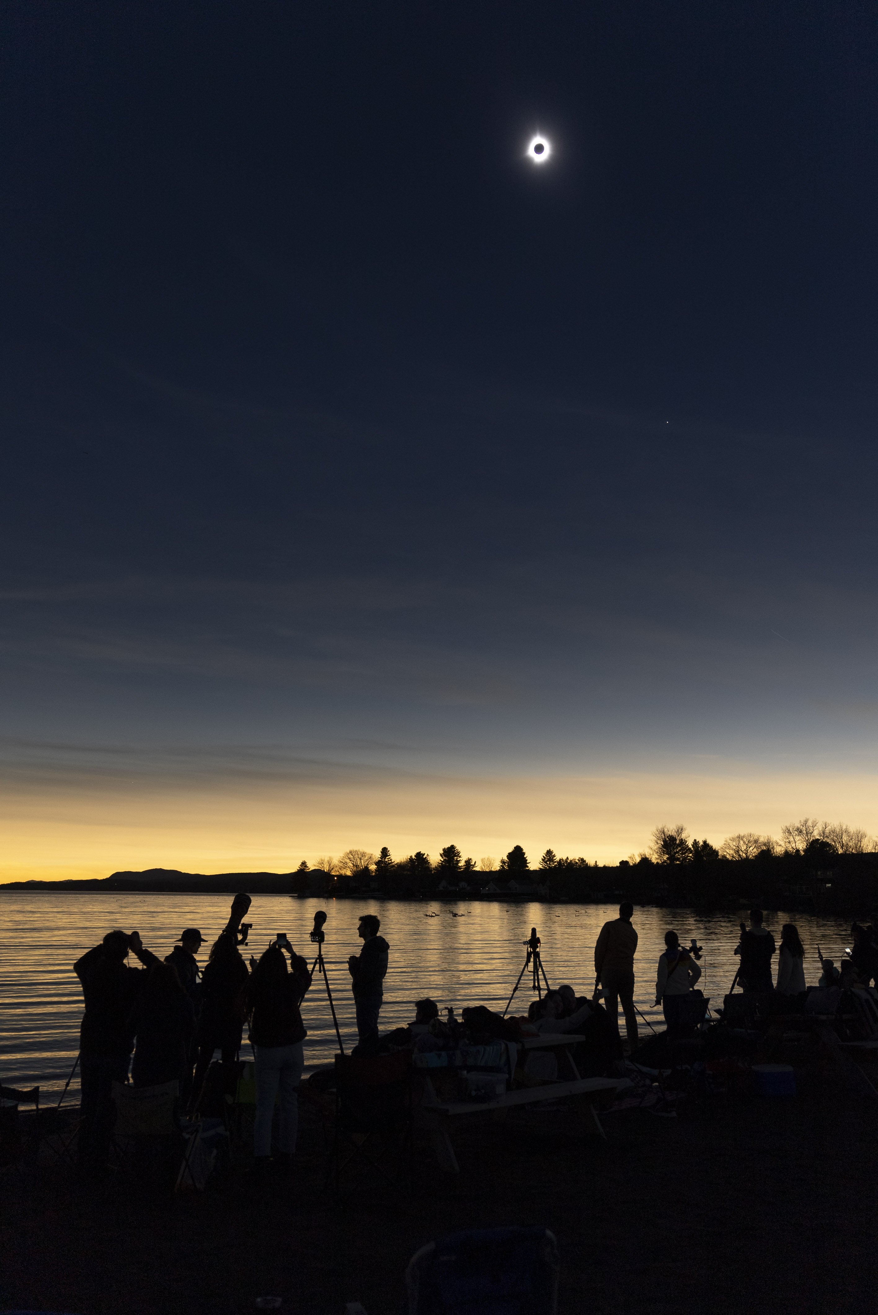 Ay Güneş'in önünü kestiğinde nasıl harika görüntüler ortaya çıkar? Pazartesi günü gerçekleşen tam Güneş tutulmasında pek çok hevesli gözlemci için aniden kararan gökyüzü, beklenen korona dışında 2 sürpriz gezegen de vardı: Venüs ve Jüpiter. Normalde bu günlerde Venüs sadece sabahları Güneş ve Jüpiter ufkun altındayken görülebilirken Jüpiter ise sadece akşamları parlak gözükürdü. Ama pazartesi günü, tutulmayı izlemek için iyi bir konum seçmiş gözlemciler için her iki gezegen de Güneş'in hizasında kolayca görülebilir hale geldi. Pazartesi öğleden sonra ABD'nin Arkansas eyaletindeki Nebo Dağı'ndan çekilen bu fotoğrafta resimlik bir ağaç ile bitrikte meraklı gözlemcilerin oluşturduğu hattı görebilirsiniz.