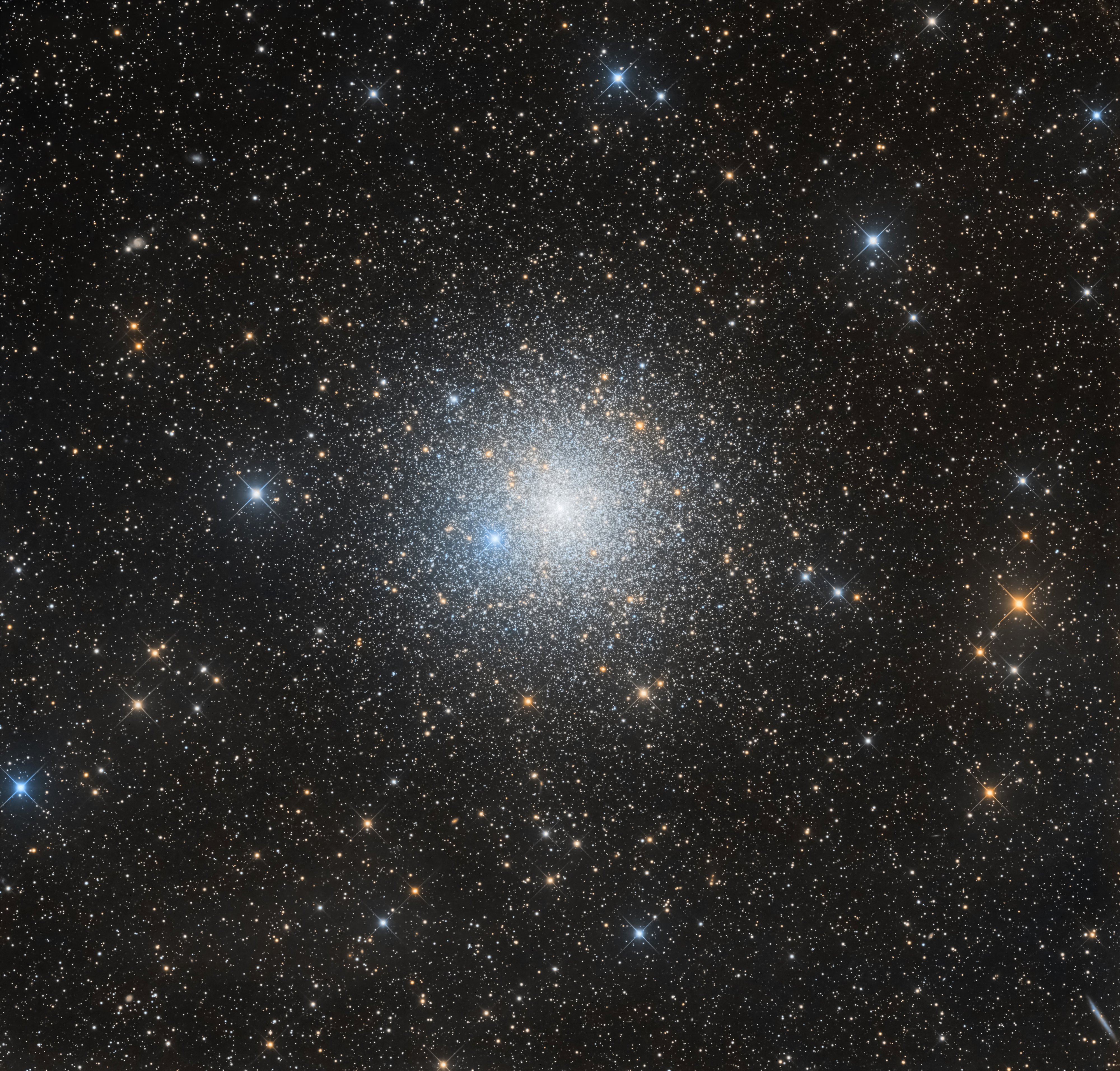 Güneydeki Tavus Kuşu (Lat: "Pavo") takımyıldızına yaklaşık 13.000 ışık yılı uzaklıkta bulunan küresel yıldız kümesi NGC 6752, içerisinde yer aldığımız Samanyolu Galaksisi’nin yörüngesinde dolanıyor. Yaşı 10 milyar yılı aşan NGC 6752; Omega Centauri, 47 Tucanae ve Messier 22 yıldız kümelerinin ardından geceleri Dünya'dan görülebilen en parlak dördüncü küresel yıldız kümesidir. NGC 6752, yaklaşık 100 ışık yılı çapındaki bir küresel alanda 100 binden fazla yıldız barındırır. Kendisi teleskop ile incelendiğinde kümenin çekirdeğine yakın konumdaki yıldızların büyük bir kısmının çoklu yıldız sistemlerinden oluştuğu keşfedilmiştir. Ayrıca bu gözlemler sonucu, yıldızlarının tamamının Güneş'ten en az iki kat daha yaşlı olması beklenen bir kümede var olamayacak kadar genç ve büyük görünen mavi başıboş yıldızların varlığı tespit edilmiştir. Bu mavi başıboş yıldızların, küme çekirdeğinde yer alan yoğun yıldız ortamında gerçekleşen yıldız birleşmeleri ve çarpışmaları sonucu oluştuğu düşünülmektedir. Bu çarpıcı renklere sahip görüntü, genç mavi yıldızlara ilaveten kümenin sarımsı tonlardaki yaşlı kırmızı dev yıldızlarını da gözler önüne sermekte. (Not: Kümenin merkezinden saat 8 yönüne doğru görülen sivri uçlu parlak mavi yıldız, NGC 6752'ye kıyasla daha ön planda yer almaktadır.)