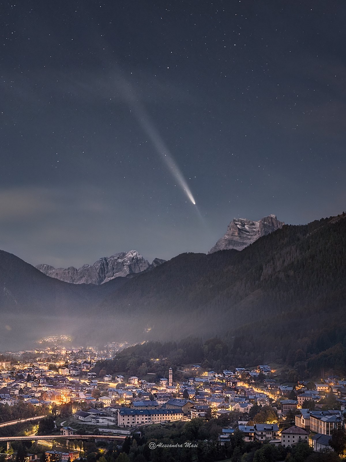 Dolomitler Üzerindeki Tsuchinshan-ATLAS Kuyrukluyıldızı