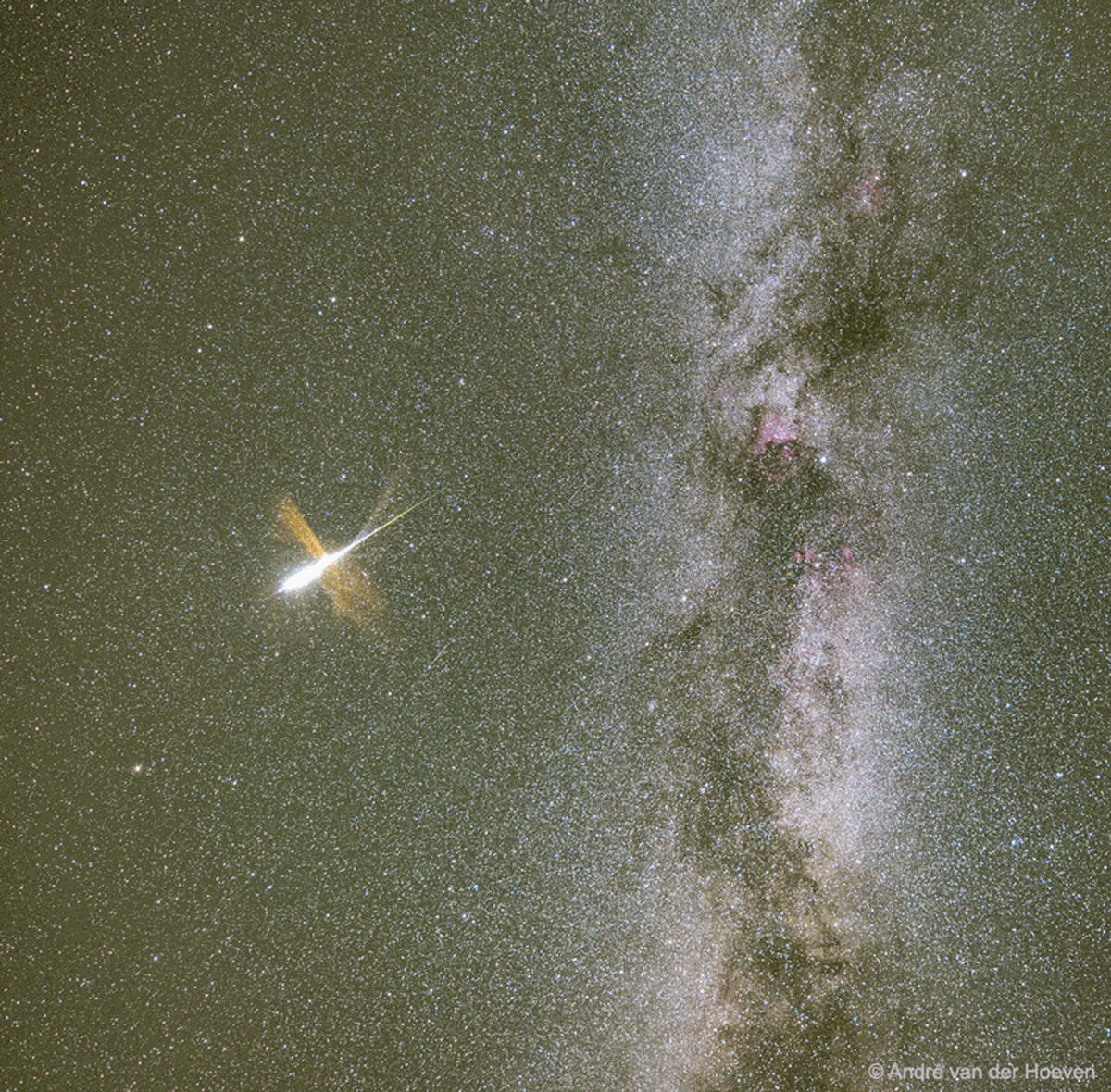 What are these gigantic blue arcs near the Andromeda Galaxy (M31)? Discovered in 2022 by amateur astronomers, the faint arcs -- dubbed SDSO 1 -- span nearly the same angular size as M31 itself. At first, their origin was a mystery: are they actually near the Andromeda Galaxy, or alternatively near to our Sun? Now, over 550 hours of combined exposure and a collaboration between amateur and professional astronomers has revealed strong evidence for their true nature: SDSO 1 is not intergalactic, but a new class of planetary nebula within our galaxy. Dubbed a Ghost Planetary Nebula (GPN), SDSO 1 is the first recognized member of a new subclass of faded planetary nebulas, along with seven others also recently identified. Shown in blue are extremely faint oxygen emission from the shock waves, while the surrounding red is a hydrogen-emitting trail that indicates the GPN's age.