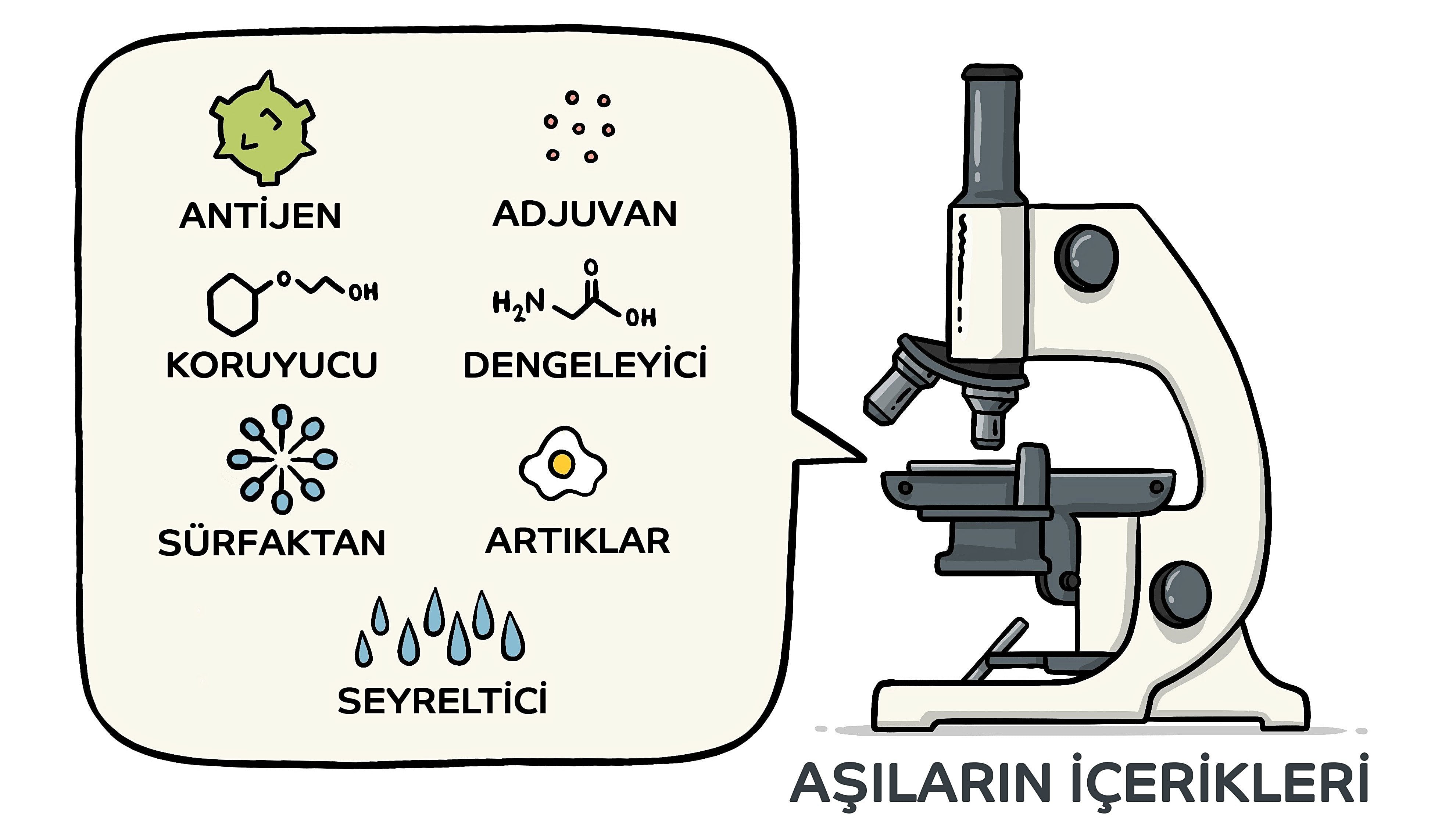 Aşıların içerisinde şunlar bulunur:
