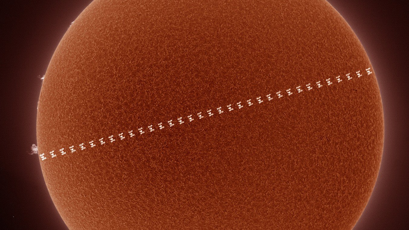 Yerden 400 kilometre civarında bir yükseklikte, Dünya yörüngesinde dönen istasyon, saniyede 8 kilometreye yakın bir hızla, yani saatte 28.800 kilometre civarında bir hızla hareket ediyor! Bu nedenle ISS'i gökyüzünde tespit edecek olursanız, ufkunuzda kaybolana kadar kısa bir süreniz var. Eğer ISS'in, gökyüzünde sadece 0.5 derece civarında bir alan kaplayan Güneş'in önünden geçişini fotoğraflamak isterseniz, bu, kulağa neredeyse imkansız bir iş olacaktır. Birçok fotoğrafını Astrofotoğrafçılık projemizden bulabileceğiniz astrofotoğrafçı Mehmet Ergün ise bu, keyifli bir meydan okumadan ibaret!