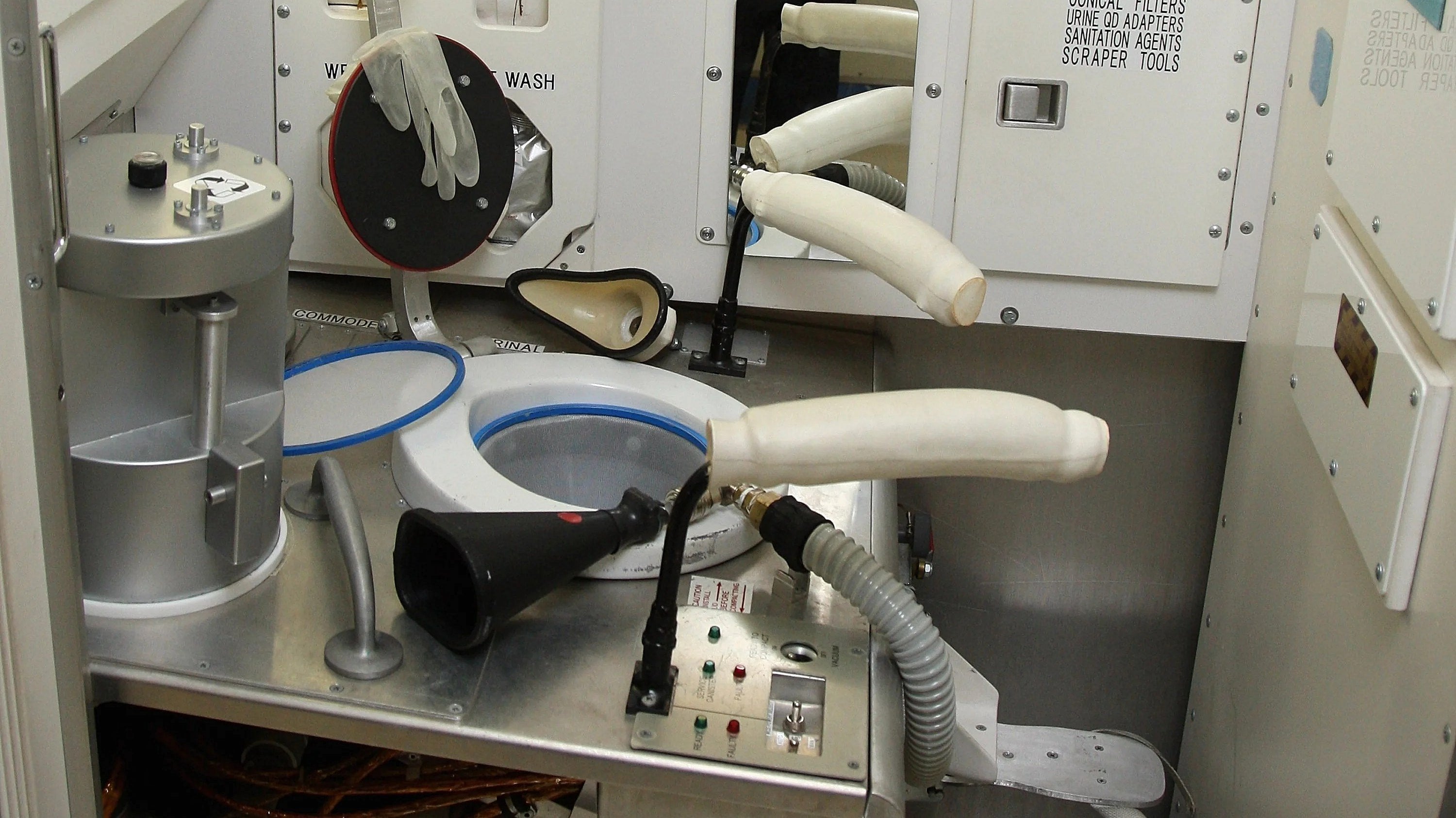 Uluslararası Uzay İstasyonu’nda 2009 yılına kadar Rus bölümünde bir tuvalet bulunuyordu, fakat NASA bu ihtiyacın artmasından dolayı kendi tarafına da bir tuvalet koymak istedi. Rus RSC Energia firmasından 19 milyon dolara bir tuvalet aldı. 2019 yılının Kasım ayında NASA tarafındaki bu tuvalet bozuldu ve kırmızı sinyal vermeye başladı. Bu tip durumlarda tamir yapmak oldukça zordur. Çözüm olarak astronotlar yeniden bebek bezi sistemine döndüler. Bu durumu çok geçmeden Houston Uzay Merkezi mühendisleri çözdü.