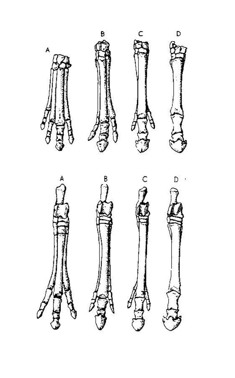 Görüldüğü gibi, her hayvan türünün, hemen her özelliğinden evrimsel değişimleri görmek mümkündür. Atların parmaklarında görülen de tam olarak budur.