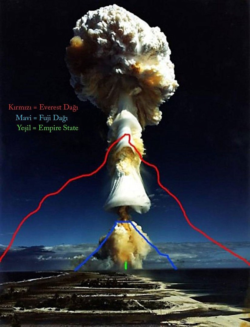 Fakat görselde, söz konusu bombaların yarattığı mantarların yüksekliği çok daha net bir şekilde anlaşılmaktadır.