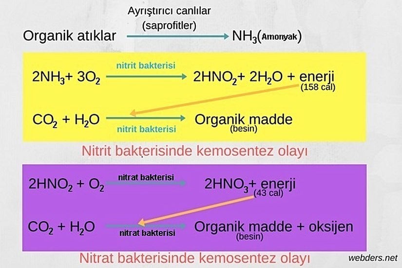 Bazı bakteriler, ışık enerjisine ihtiyaç duymadan kimyevi enerji ile organik madde sentezlerler. Mesela azot, kükürt, demir ve hidrojen bakterileri klorofile sahip olmadıkları halde kemosentez sayesinde kendi enerjilerini üretebilirler. Bu şekilde kendi besinlerini üreten bakterilere “kemosentetik bakteriler” denir.