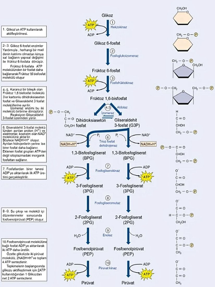 Glukoz+ATP→Glukoz-6-fosfat+ADP\text{Glukoz}+\text{ATP}→\text{Glukoz-6-fosfat}+\text{ADP}