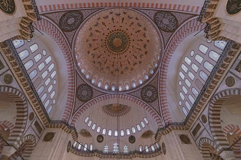 Kemer, tonoz ve yarım kubbenin oluşturduğu sistem; kubbenin geniş bir alanı rahatlıkla örtebilmesini olanaklı hale getirmiştir. Yapının iç mekanı, kubbesi başta olmak üzere birçok alan oldukça sanatsal bir görünüm elde etmiştir. [5] Kubbesi üzerinde 40 adet pencere bulunmakta olup kubbe, renkli bir iç kısma sahiptir. Dört adet içbükey üçgen pandandif üzerine oturan kubbe, Bizans yapılarında sıklıkla görülen bir kubbe biçimidir.