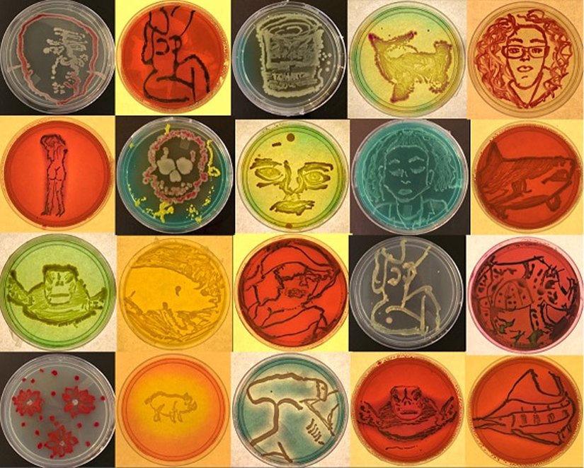 - American Society for Microbiology'nin düzenlediği Agar Art yarışmasında mikroorganizmalar renkli koloniler oluşturarak sanat eserleri yaratılır; bakteriyografi ise bakterilerle görüntü oluşturma tekniğidir.