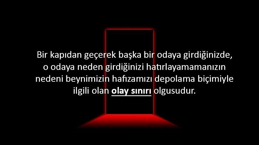 - Notre Dame Üniversitesi'nden Dr. Gabriel Radvansky'nin araştırması, bir kapıdan geçmenin hafızayı olumsuz etkileyerek, taşınan nesnenin unutulmasına neden olduğunu göstermiştir.