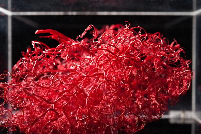 Bu gördüğünüz, beyin damarlarına ait sanat ödüllü bir kalıptır. Yani beynimizdeki damarların içlerindeki boşluğun kalıplanmasıyla elde edilmiş bir modeldir.