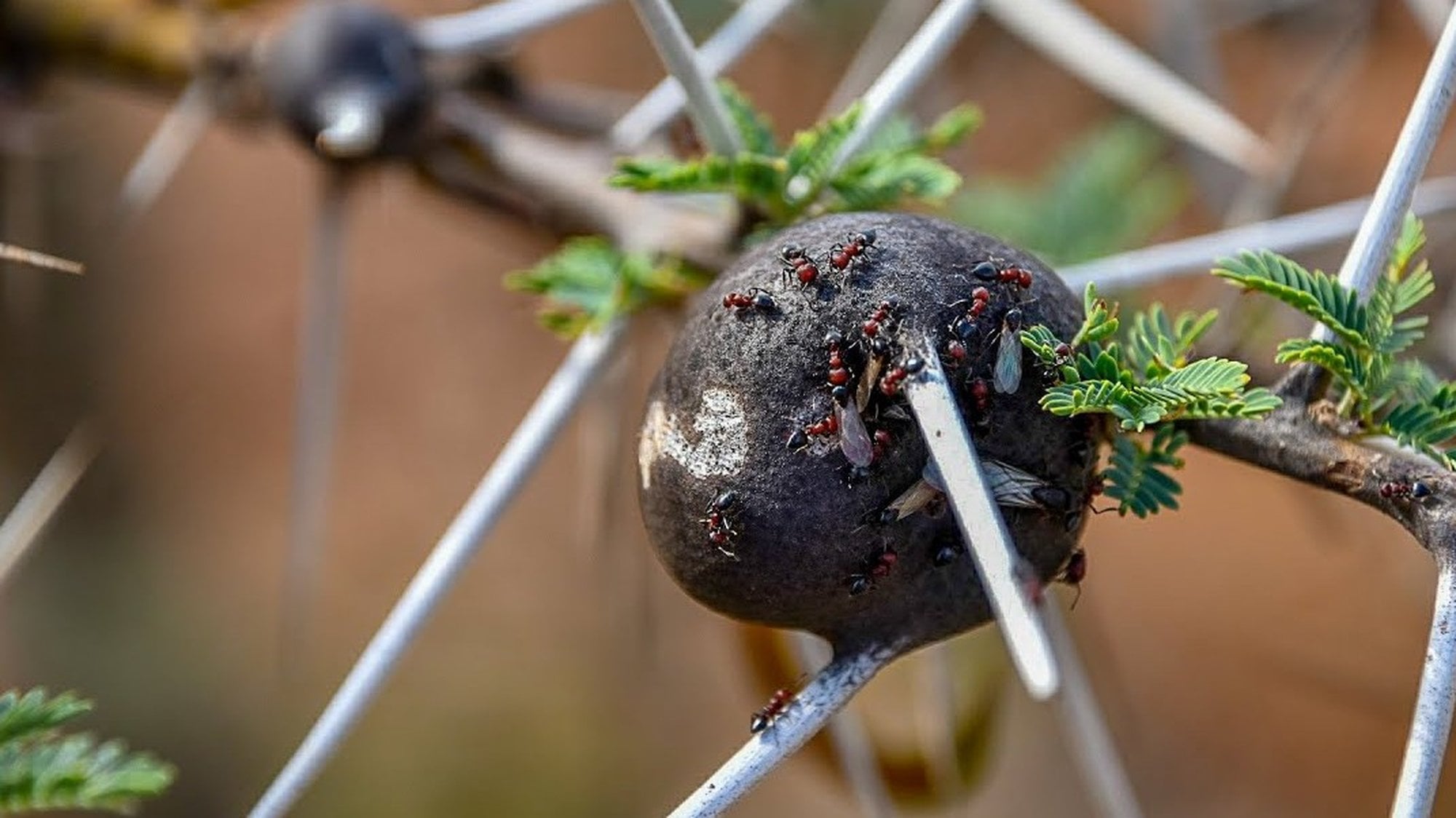- Acacia ağaçları, fillerin otçulluğuna karşı dikenler ve kimyasal caydırıcılar kullanırken, A. drepanolobium türü karıncaları ‘muhafız’ olarak koruma amaçlı evlerinde barındırır.