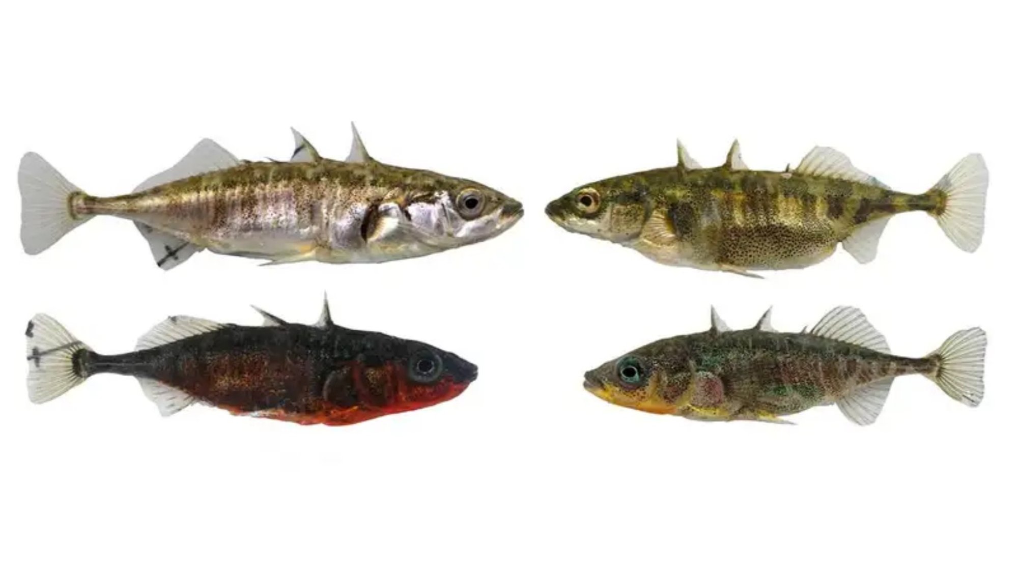 Üç dikenli balık türü, 150 yıl kadar önce (evrim açısından "gözümüzü kırpma süresi") İsviçre’deki Constance Gölü’ne getirilip bırakıldı. Fakat o zamandan itibaren balık, iki farklı tipe dönüşmeye başladı: ana gölde yaşayan tip (görselde sol üstteki dişi, sol alttaki ise üremeye hazır erkek) ve göle dökülen sularda yaşayan tip (resimde sağdaki).