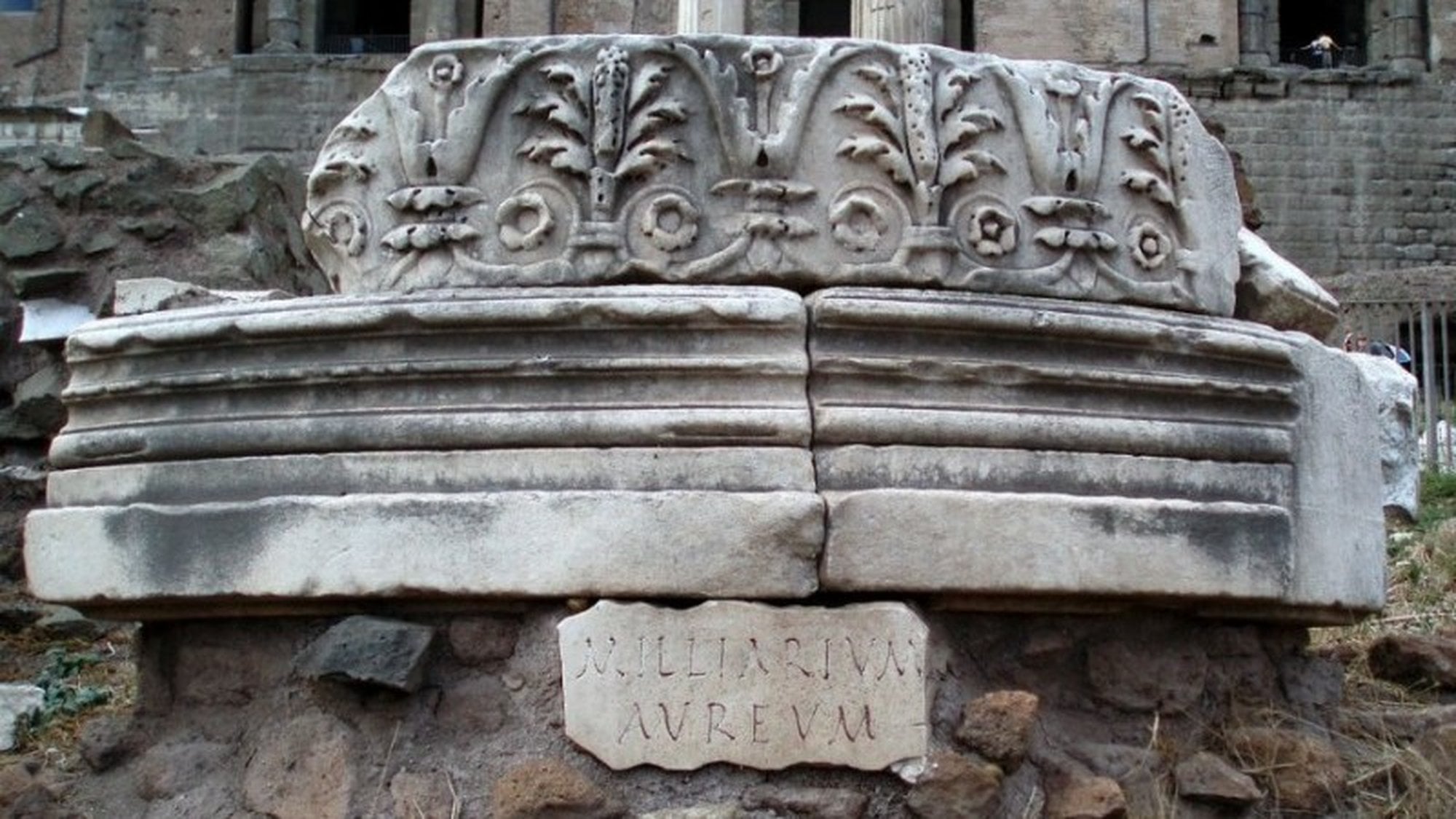 Tabii ünlü Roma yolları için bir merkez noktası olması gerektiği fikri üzerine, Roma İmparatoru Augustus’un, ülkesini ve dolaylı olarak da kendini Dünya’nın merkezine koyma arzusundan kaynaklı Golden Milestone (Altın Miltaşı) anıtı dikilmiştir. Ve tüm yolların bu anıtta başladığı dolayısıyla tüm yolların bu anıta yani Roma'ya çıktığı fikri verilmiştir.