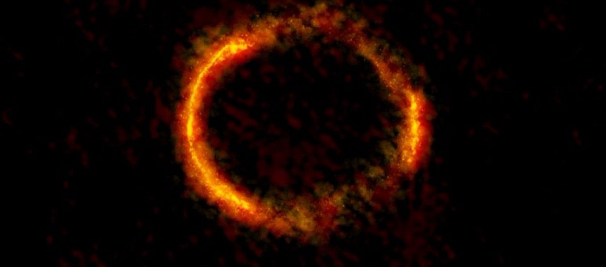 Burada gördüğünüz uzak bir galaksiden gelen ışınların, Dünya ile o galaksi arasındaki büyük kütleli bir cisim nedeniyle bükülerek bir halka gibi yoğunlaşması sonucu elde edilen bir görüntüdür. Fotoğraf, Atacama Büyük Milimetre Dizisi (ALMA) ile çekilmiştir. Bu görüntü, Einstein'ın "kütleçekim lensleme" adını verdiği ve on yıllar önce öngördüğü bilimsel bir gerçeğin sayısız fiziksel ispatından bir diğeridir.