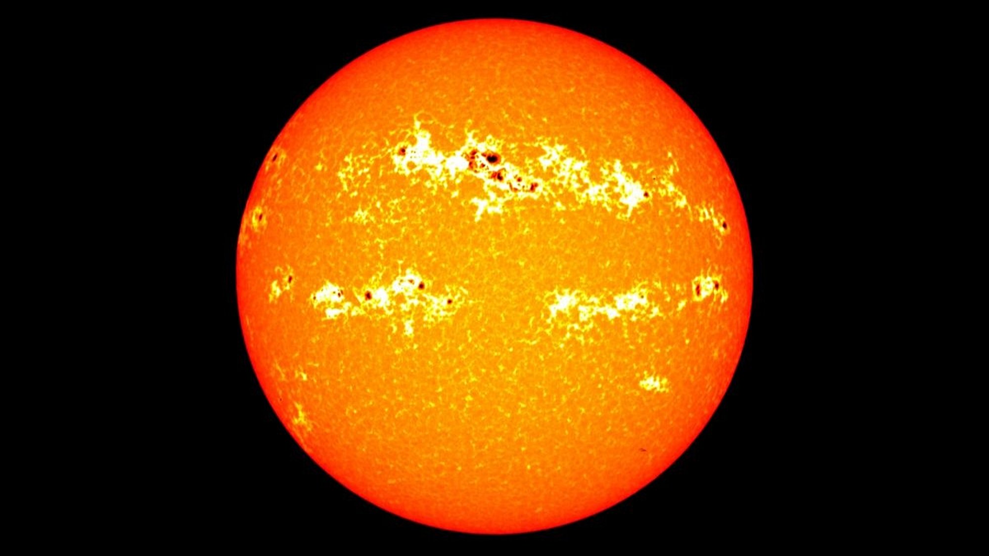 Ama şimdi güneş lekeleri neredeyse hiç gözükmüyor. Cuma günü NASA'nın Solar Dynamics Observatory tarafından çekilen fotoğrafta, merkezin sağında oluşmakta olan Güneş lekesinin yerinde cüzi miktarda kahverengi lekeler vardı. Ama fotoğraf çekildikten bir gün önce orada hiçbir şey yoktu. O gün tamamen lekesiz bir gündü.