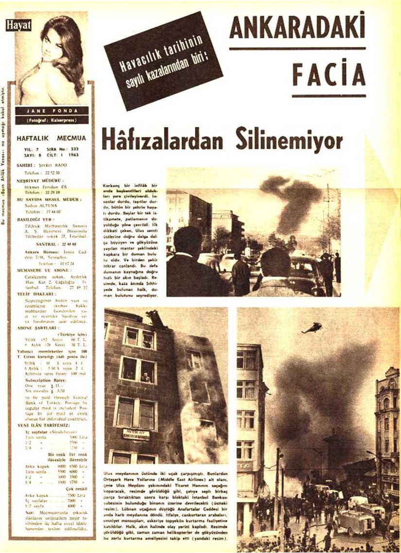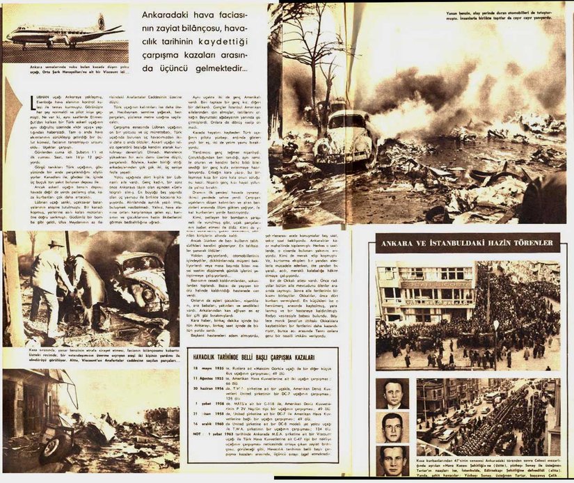 Bundan tam 43 yıl önce, takvimlerin 1 Şubat 1963’ü gösterdiği bir cuma günü öğleden sonrasında, Orta Doğu Havayolu şirketi MEA / Middle East Airlines’a ait 265 sefer sayılı ve OD-ADE tescil işaretli VISCOUNT-754D tipindeki yolcu uçağı,4 mürettebatı ve 11 yolcusuyla birlikte Beyrut-Lefkoşe-Ankara seferini tamamlamak üzere olduğu saat 16.04 sularında, güney istikametinden 8000 Feet (2438m.) irtifa (Non Directional Beacon/Radyo Frekansı) NDB üzerinde Ankara semalarına girmiş, akabinde de Esenboğa kule ile telsiz teması sağlayarak, kule görevlisi İhsan Tavşangil’e, "Normal uçuyoruz, Ankara üzerine temas ettik ve 6500 Feet'e alçalıyoruz…” mesajıyla saat 16.10’da durumunu rapor etmişti. Uçuş ekibi, NDB’ye yöneldiğini ve durumunu bildirmek için kule ile tekrar temas kuracaktı ancak bu mümkün olmadı. Son temasın hemen ardından saat 16.25’te Esenboğa RWY03’e (Sıfır-Üç Pisti) NDB yardımıyla güneyden planlanan (IANK 213 Right Heading) iniş için 6500 Feet irtifaya alçalma başlatan ve (Initial Approach/İlk Yaklaşma) INA safhasına giren VISCOUNT, tesadüfen o bölgede eğitim uçuşu yapan Türk Hava Kuvvetleri Etimesgut 12'nci Hava Ulaştırma Üs Komutanlığı'na ait "Çubuk 28" isimli DOUGLAS C-47 tayyaresiyle Ulus’a çok yakın bir mesafedeki Altındağ sırtlarıyla Hisar tepesi arasında kalan vadi üzerinde, takribi 7000 feet irtifada karşılaşmış, birbirlerini görmemeleri neticesinde de, saat 16.12’de yakın temasa girip, çarpışarak meskun mahal üzerine düşmüşlerdi...