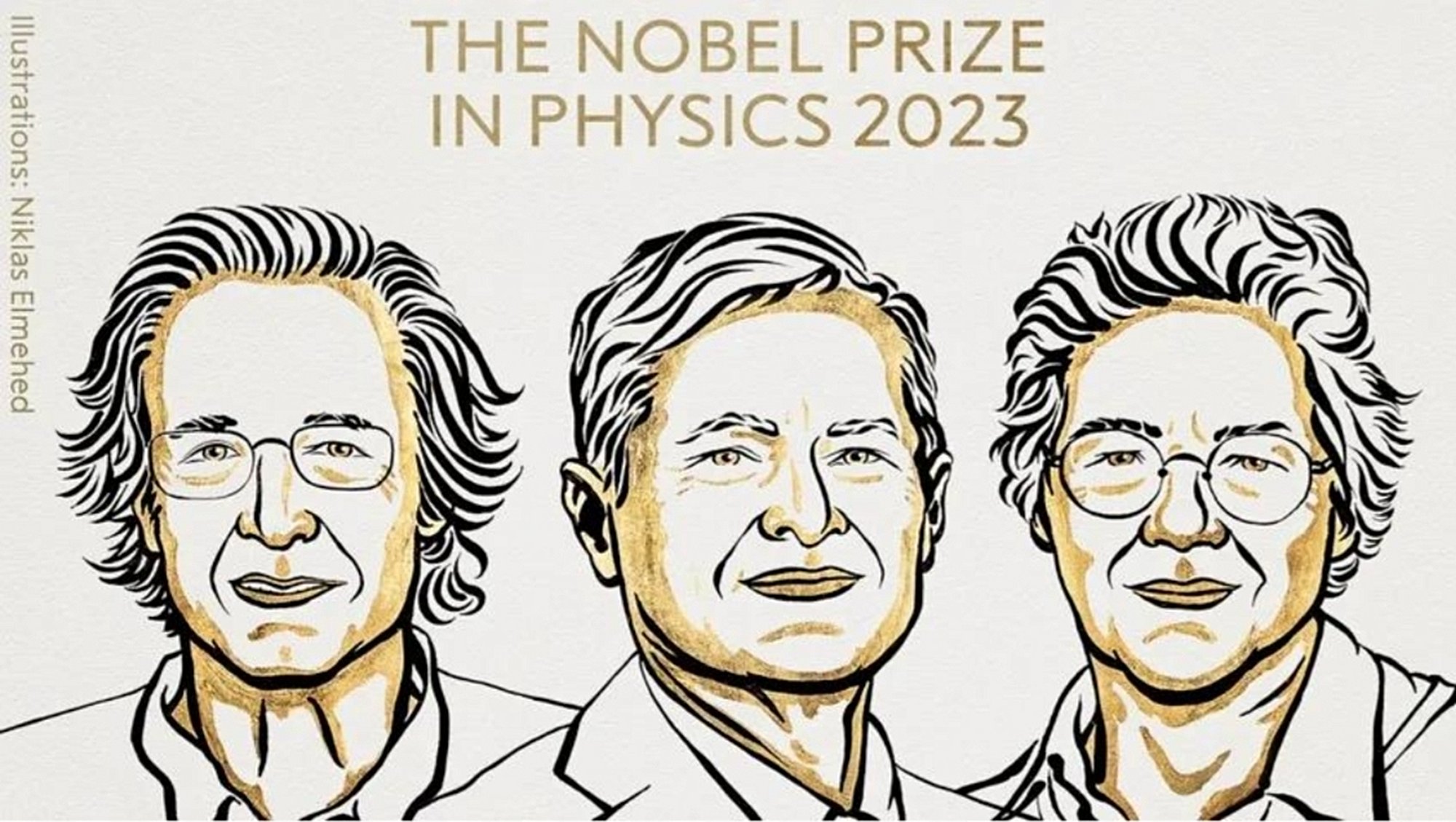 2023 Nobel Fizik Ödülü, maddedeki elektron dinamiklerinin incelenmesi için atosaniye ışık atımları üreten deneysel yöntemler geliştiren üç bilim insanına verildi. Bu yöntemler, atom ve moleküllerin içindeki elektronların hareket ettiği veya enerji değiştirdiği hızlı süreçleri ölçmek için kullanılabiliyor. Ödülün sahipleri şunlardır:
