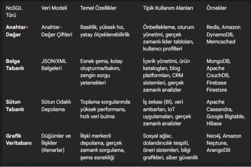 Tablo 2: Başlıca NoSQL Veritabanı Türleri ve Kullanım Senaryoları
