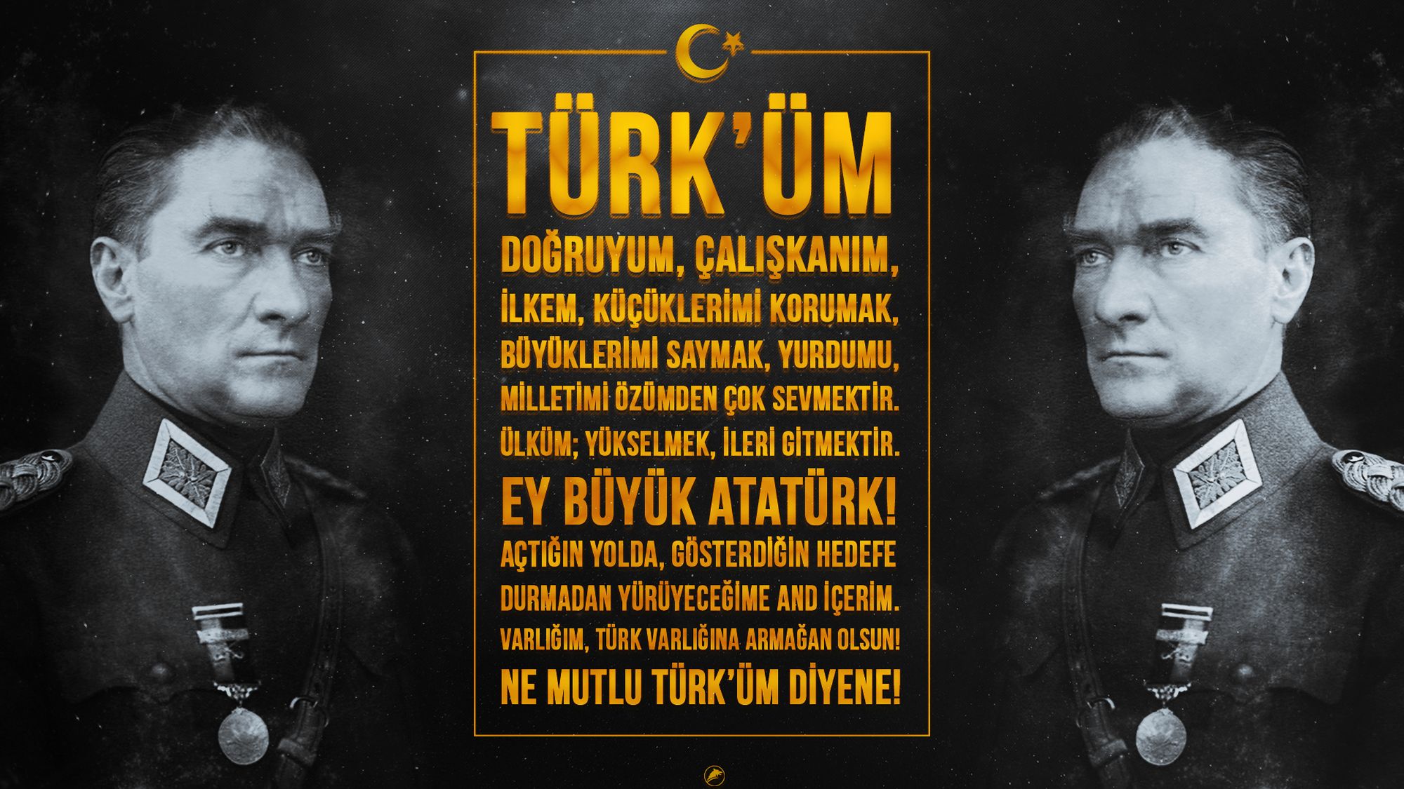 İlkem: küçüklerimi korumak, büyüklerimi saymak, yurdumu, milletimi özümden çok sevmektir.