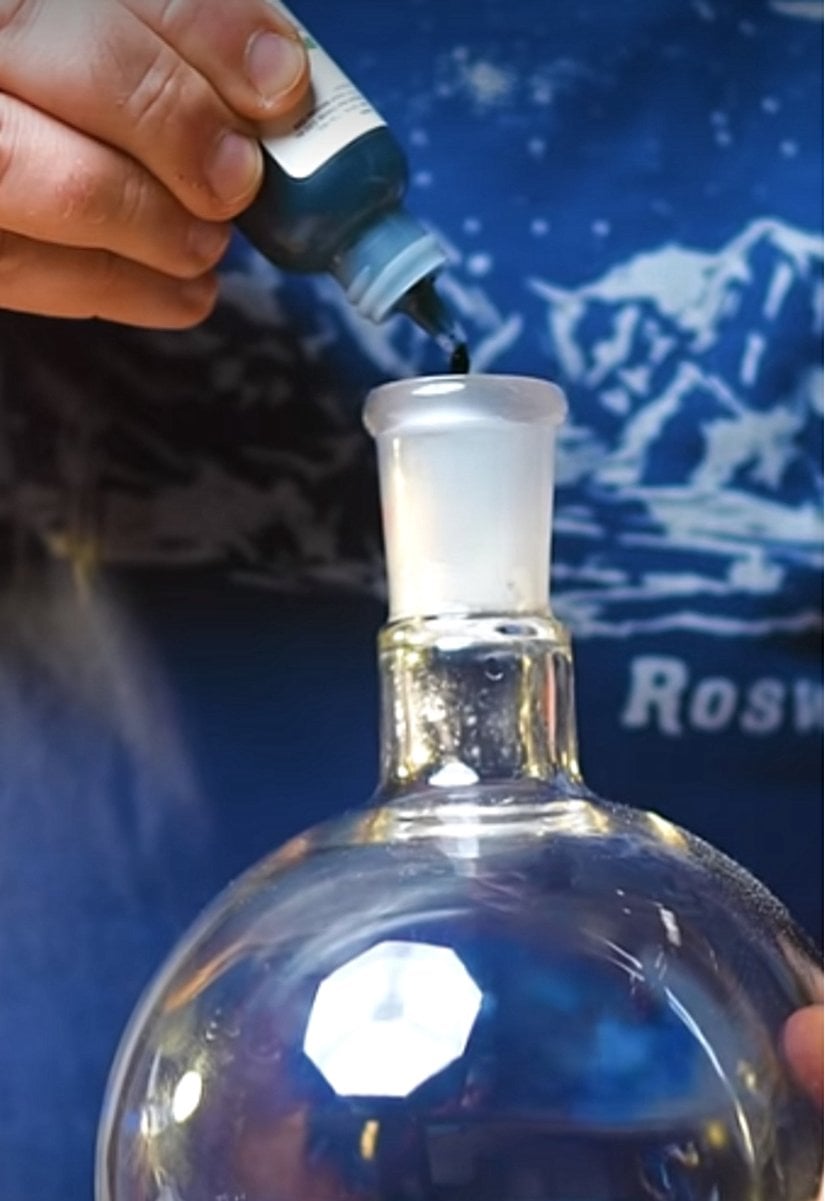 Evrim Ağacı Youtube KanalıBuradaki sihrin kaynağı şişededir. Bu sıvılar eklendikten sonra şişeyi çalkalayınca sıvının rengi mavi olurken biraz bekledikten sonra tekrardan beyaza dönüyor. Burada bu olayı (renk değiştirmeyi) sağlayan madde ‘’metilen mavisi’’dir. Metilen mavisi oksijen ile tepkimeye girdiği müddetçe bu değişim gerçekleşmektedir. Metilen mavisi oksijen ile tepkimeye girdiğinde mavi, dekstroz (üzüm şekeri) ile tepkimeye girdiğinde şeffaf bir belirteç oluyor.