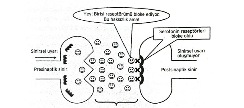 Reseptörler kilitler gibidir. Sadece o kilidin anahtarı o kilidi açabilir. Yani sadece ilgili nörotransmitter kendi reseptörü dışında başka bir reseptöre bağlanamaz.
