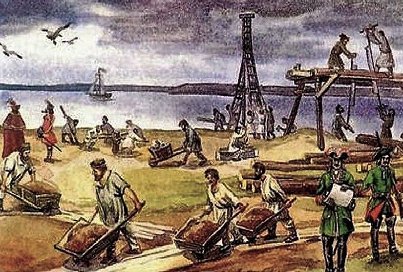 1709'da şehrin inşası hız kazandı. Sanata değer veren Çar 1. Petro, şehre zanaâtkarlar da getirmeye başladı. Çar, Avrupa'yı görmüştü dolayısıyla burayı Avrupai bir mimari ile yaratmak istiyordu. Öyle de yaptı. Petro, ülkenin dört bir yanından 4800 usta getirtti. Hepsi alanlarında uzman olan taş ustaları, marangozlar, demirciler, çömlekçiler ve bakırcılardı.