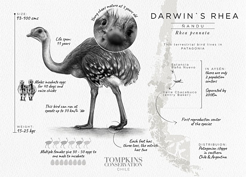 Burada sadece fosil kalıntısı ve gözlem yapmakla kalmamış ve literatüre Darwin’in nandusu olarak bilinen asıl tür adı Pterocnemia pennata olan kuş türünü de kazandırmıştır. Birçok yazar tarafından kaleme alınan editörlüğünü Darwin’in yaptığı “The Zoology of the Voyage of H.M.S. Beagle, Under the Command of Captain Fitzroy, R.N” kitabına da bu kuş türünün illüstrasyonu çizilmiş olan kuş büyük nandu olarak da bilinen Rhea americana türünden farkça daha küçük boyutlara sahip olup ,bulunduğu familyada daha az ve daha ender rastlanan bir türdür.