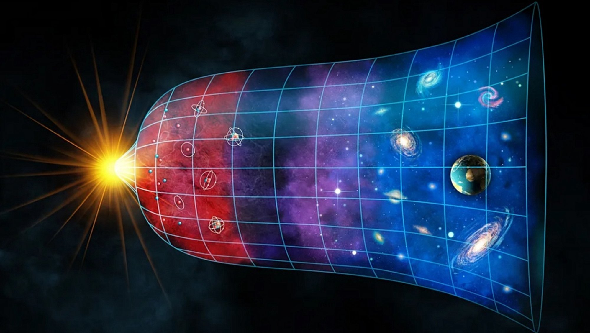 Ama başlangıçta bulduğumuz şey, hayal edebileceğimiz kadar kaotik bir patlama olan Big Bang.