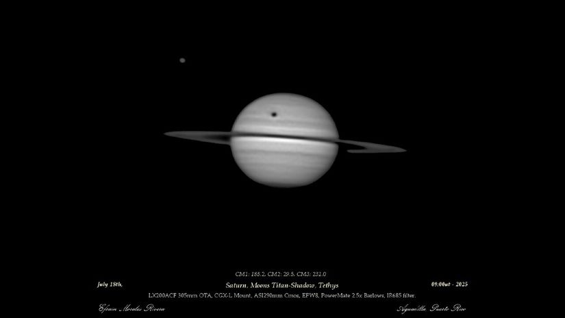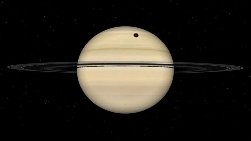 Titan'ın gölgesi, Satürn'ün bulut tepeleri üzerinde belirginleşir. Bu nadir gölge geçişleri mevsimi, Satürn'ün halkalarının ve Titan'ın yörüngesinin Dünya ile aynı hizaya gelmesiyle her 15 yılda bir gerçekleşir. Bu geçiş sezonunda, 20 Eylül ve 6 Ekim 2025 tarihlerinde Titan'ın gölgesinin Satürn'ü kararttığı ek iki fırsat daha olacaktır. 2024 Kasım ve Aralık aylarında da benzer gölge geçişleri yaşanmıştır