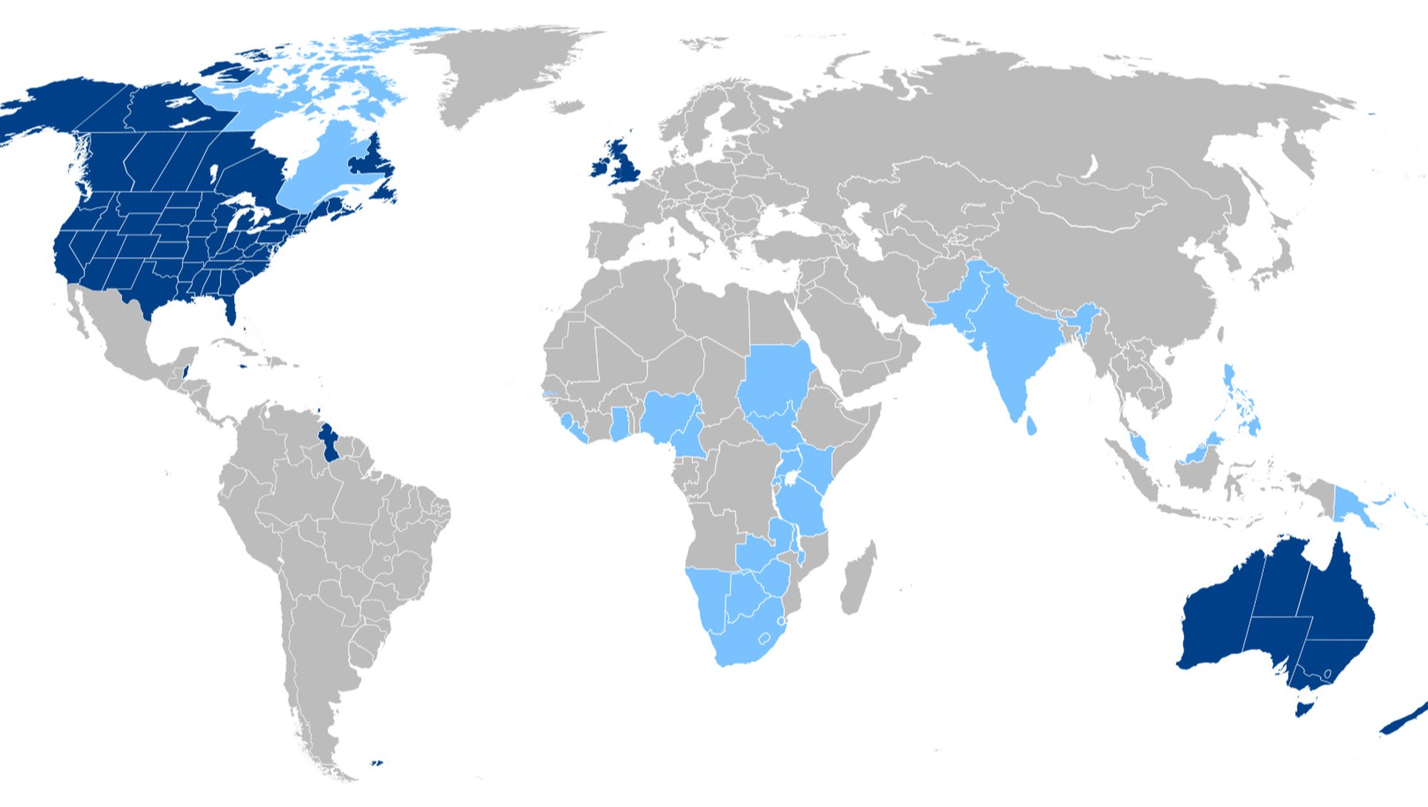 - Kuzey Amerika, Doğu-Orta Afrika ile Avustralya kıtasında İngilizceyi baskın olarak görmekteyiz.