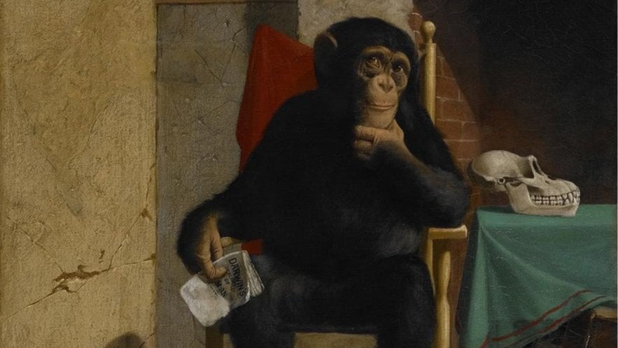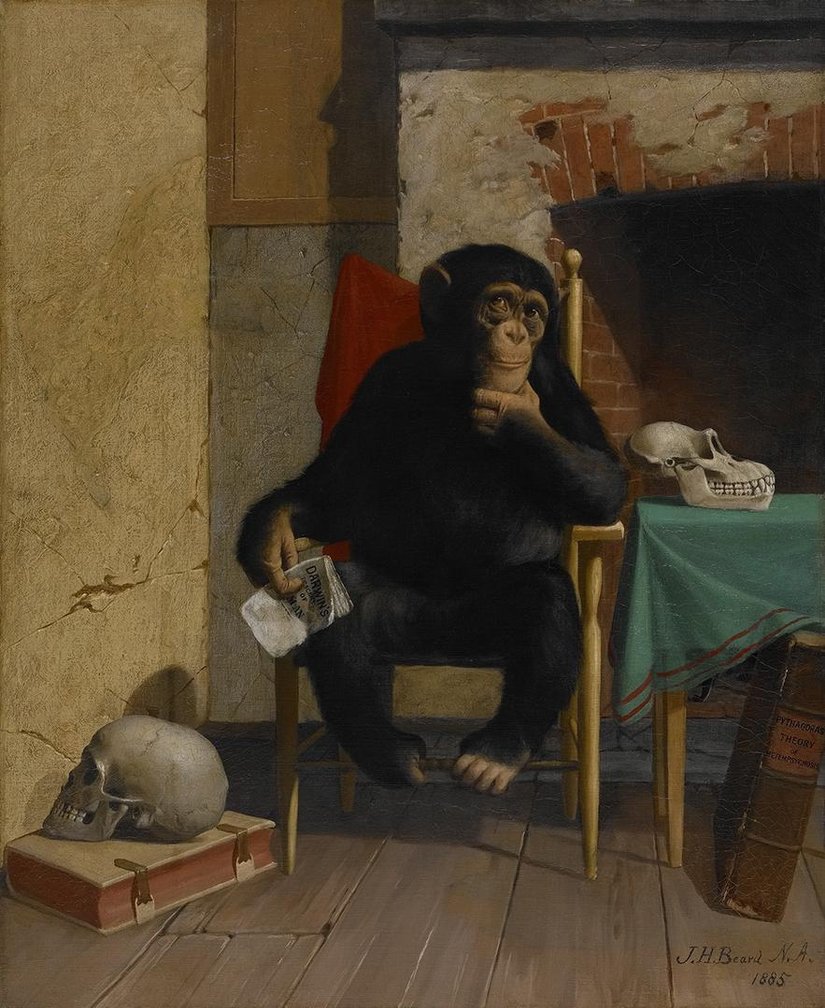 Tablomuzu verdiğim örnekler gibi akımın temsilcilerinden ayıran ise şempanzemiz burada insana özgü kıyafetler giymiyor, yani insana benzetilen bir maymun değil, düşünen bir hayvan gibi resmedilmiş. Ressam düşünmenin sadece insana özgü olmadığını; ya da eğer şempanzeler bizim kadar evrimleşseydi, nasıl bir bilinç taşıyacaklarını sorguluyor olabilir. Tabii ki ne ressamımızın ne de şempanzemimizin kesin olarak ne düşündüğünü hiçbir zaman bilemeyeceğiz, ancak bildiğimiz bir şey var. Bu tablo, gerçek bir şempanzeden ilham alınarak çizilmiş.[2]