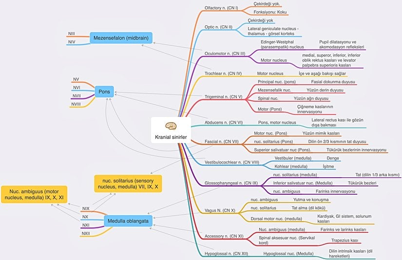 - Nervus Olfactorius: Koku duyusunu alan sinirdir, burun başlığındaki koku hücrelerinin aksonlarının uzantılarıdır.