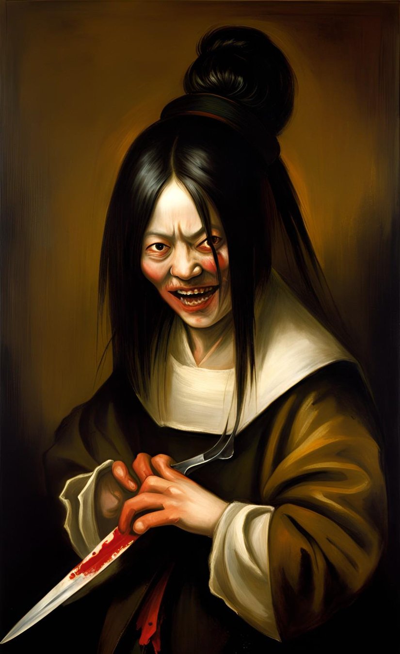 Hayaletin geçmişi hakkında 2 farklı teori vardır. Birinci teori, bir samurayın sadakatsiz karısı olduğu söylenir. Samuray görevden erken gelip karısını başka bir adamla yakalayınca çok sinirlenir. Adamı orada öldürür, karısının ağzını ise kulaklarına kadar keser ve ardından karısını lanetler. Karısı ölünce ise kötü ruha yani onryō’ya dönüşür. Bir diğer versiyonunda ise bu güzel kadını kıskanan bir başka kadın ise gecenin bir vakti ona pusu kurarak saldırır. Bıçakla ağzını boylu boyunca keser. Bu çirkin haline kadının kocası dayanamaz ve onu boşar. Zavallı kadın ise hayatı boyunca dışlanır, ölüme yakın yaşadığı bölgeyi lanetler. Öldükten sonra onryō olarak dirilir ve insanlara terör estirir. Her iki versiyonunda da kadınları ne kadar çirkin benzetmeler yapılmış altını çizerim.