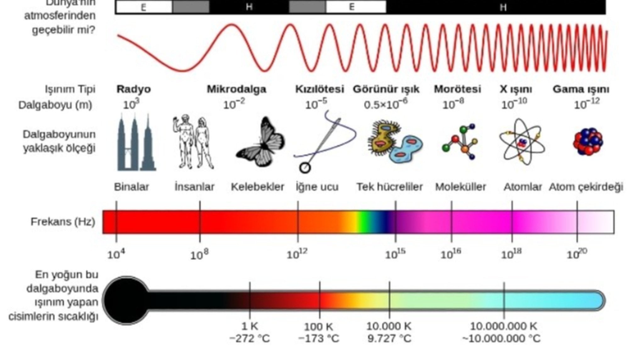 - Frekans: Frekans, bir saniyede geçen dalga sayısıdır ve Hertz (Hz) cinsinden ölçülür. Frekans arttıkça dalga boyu kısalır ve enerji artar.
