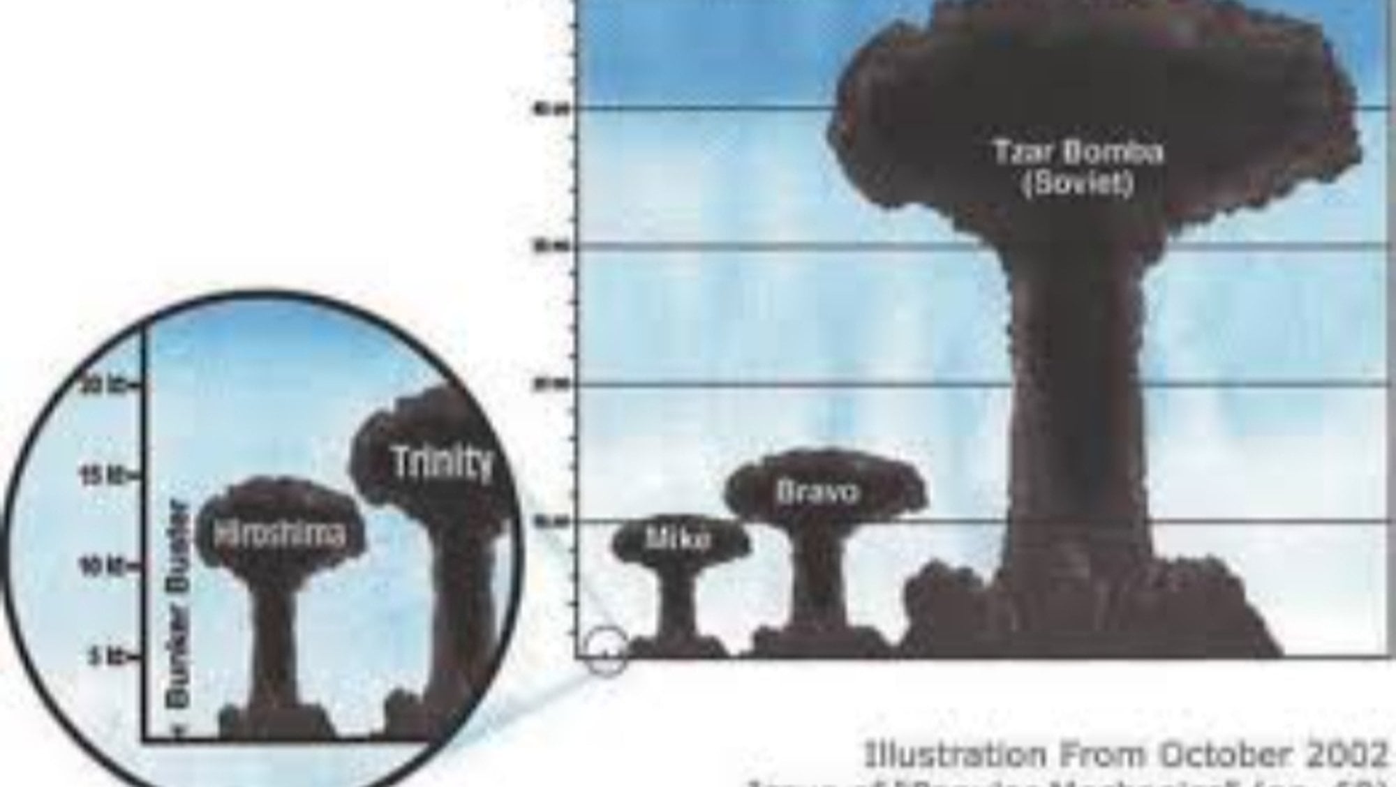Çar Bomba, Dünya üzerinde şimdiye kadar test edilen en güçlü nükleer bombaydı. Bu, 50 megaton TNT'lik gücüyle insanlar tarafından şimdiye kadar yaratılmış en büyük patlamaydı. Bu, sırasıyla 25 ve 15 megatonluk verime sahip olan B41 ve Castle Bravo gibi Amerika Birleşik Devletleri tarafından üretilen en büyük nükleer bombalardan çok daha güçlüdür. Çar Bomba o kadar büyük ve ağırdı ki sadece özel olarak modifiye edilmiş bir bombardıman uçağı tarafından taşınabiliyordu ve 100 megatonluk tam bir patlamanın kabul edilemez miktarda nükleer serpinti yayacağı tahmin ediliyordu. Bu, 1950'lerde hem Sovyetler Birliği hem de Amerika Birleşik Devletleri tarafından yaratılan bir dizi yüksek verimli termonükleer silahın doruk noktasıydı.