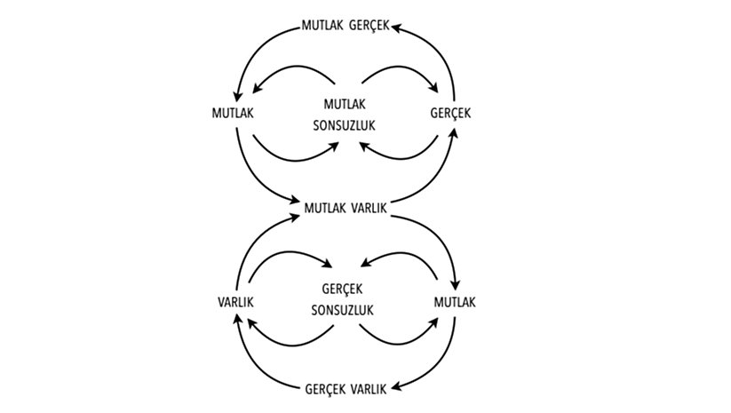 Mutlak Varlık, önce Gerçek Yaratılış döngüsünü yaratır. Bu döngüde mutlak ve varlık birbirlerinden ayrılarak, Gerçek Sonsuzluk döngüsü var olur. Yaradan olan Mutlak Varlık, Gerçek Sonsuzluk’ta mutlaklığını gerçek kılar ve mutlak olan gerçek olur. Mutlak Varlık da Gerçek Sonsuzluk’taki varolumu sonucu kendini Gerçek Varlık olarak var eder. Mutlak Sonsuzluk, Gerçek Sonsuzluk’la beraber Sonsuzluğun Sonsuzluğu olur. Sonsuzluğun Sonsuzluğu’ndaki döngü görseldeki gibi açıklanır.