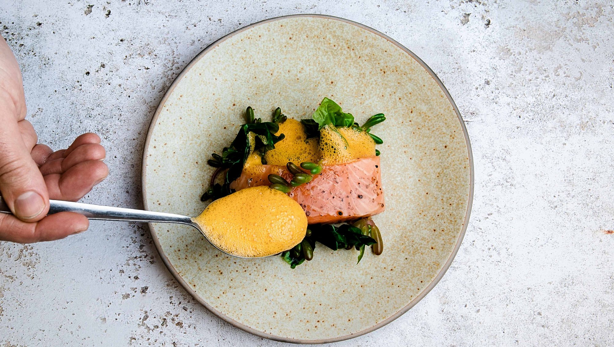 Köpük Tekniğiyle yapılmış bir yemek.