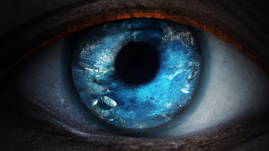 The mysterious beauty of an immortal dragon eye, a picture of an eye filled with sky blue lenses