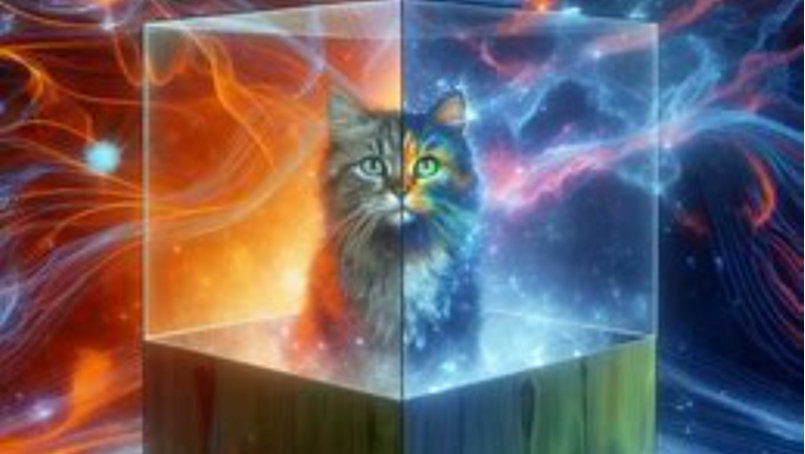 Bu düşünce deneyini anlamak kuantum fiziği için çok önemli hatta yapı taşlarından biridir, lütfen pür dikkat okumaya devam edin. Bu deney Avusturyalı fizikçi Erwin Schrödinger tarafından ortaya atılmış bir düşünce deneyidir. Şimdi aynı şekilde düşünelim. elimizde bir kutu, bir kedi var. Öncelikle bu kediyi kutunun içine koyalım ve kutunun içine ışıma yapabilecek rastgele bir atom koyalım, ışımayı tespit etmek içinse bir sayaç ve son olarak sayaca bağlı bir tabanca düşünün eğer ki sayaç ışıma tespit ederse silah ateşlenir ve kedi ölür ya da sayaç herhangi bir ışıma kaydetmez ve kedi yaşar. Bunu anlamak için düzeneği kuralım ve belirli bir süre bekleyelim. Bu süre zarfında kutu açıldıktan sonra kediye ne olacağını bilemediğimizden dolayı iki ihtimalimiz var kedi ya ölü olacak ya da diri ama bunu kutu açılana kadar göremeyeceğiz o yüzden kedi bizim için hem ölü hem de diri bir durumda evet evet yanlış duymadınız kedi hem yaşıyor hem de ölü, ikisi de aynı anda gerçekleşiyor .İşte bu duruma da ''süper pozisyon'' diyoruz aynı kedi iki farklı olasılık aynı anda fakat bu durum kutuyu açana kadar devam ediyor çünkü kutu açıldığında süper pozisyon çöker ve sonuca ulaşırız. Ama burada da bitmiyor eğer kutuyu açtığımızda kedi yaşıyorsa ışıma olmamıştır ve de tabanca ateşlenmemiştir peki ya tüm bu dediklerim olmuş olsaydı? Sonuçta kedi ölmüş olacaktı değil mi? Ama olmadı. Kedi kutu açılana kadar hem ölü hem de diridir ancak bunu kedi %50 öldü %50 yaşıyor diyemeyiz çünkü bilemeyiz! Sadece kedi için iki farklı ihtimal/olasılık vardı. Şimdi meraklılara bir mesaj bırakacağım. Eğer kutuyu açtığımızda kedi ölü çıktı belki de evet ama başka bir evrende o kedi kutudan sağ çıkmıştı, olamaz mı? Bunun için ''çoklu evren teorisini'' veya ''sicim teorisini'' araştırabilirsiniz.[8]