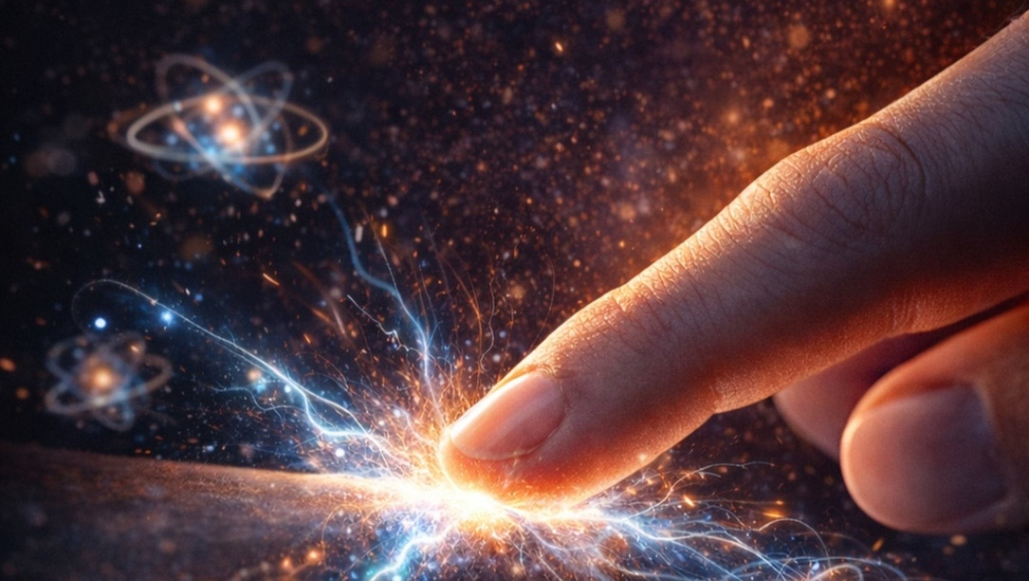 Bir yüzeye dokunduğumuzda aslında olan şey şudur: Parmağımızdaki atomların elektronları, karşı yüzeydeki atomların elektronlarına çok yaklaşır. Elektronlar negatif yüklüdür ve aynı yükler birbirini iter. Bu nedenle elektron bulutları birbirinin içine geçmez; arada güçlü bir elektromanyetik itme kuvveti oluşur. Sinir sistemimiz de bu kuvveti basınç ya da temas olarak algılar. Biz buna "dokunma" deriz.