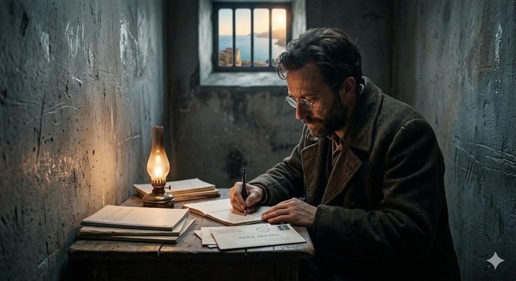 Braudel’in hikayesini efsanevi kılan olay, 1940 yılında Nazilere esir düşmesiyle başlar. İkinci Dünya Savaşı sırasında teğmen olarak görev yaparken esir alınan Braudel, beş yılını Almanya’daki toplama kamplarında geçirdi. Elinde hiçbir kaynak yoktu, kütüphane yoktu, sadece beton duvarların arasında hafızasına ve Paule’e olan güvenine sığındı. Braudel, ünlü eseri Akdeniz ve II. Filip Döneminde Akdeniz Dünyası'nı, hiçbir kitaba bakmadan tamamen hafızasındaki bilgilerle okul defterlerine yazmaya başladı. Yazdığı her bir defter sayfasını, mektup aralarına gizleyerek veya izin verilen paketlerle karısı Paule’e gönderiyordu. Paule, dışarıda Nazi işgali altındaki Fransa'da bu notları biriktiriyor, kocasının hayatta kalma motivasyonu olan o sayfaları saklıyordu.