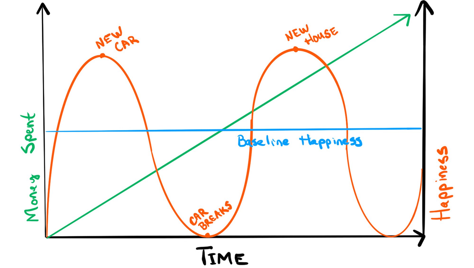 Brickman ve Campbell (1971)[2], insanların iyi ve kötü olaylara nasıl uyum sağlama eğiliminde olduklarını ve daha sonra aynı temel mutluluk düzeyine nasıl döndüklerini tanımlamak için "hedonik çark" terimini önerdiler. O zamandan bu yana, psikoloji ve ekonomi alanlarındaki bir dizi makale, insanların piyangodaki umulmadık kazançlardan, bir uzvunu kaybetmekten, kansere kadar değişen belirli yaşam olaylarına uyum sağladığına dair bazı kanıtlar gösterdi. Mevcut mutluluk doğrudan geçmiş mutluluğa bağlı olabilir, bu da mutluluğun otoregresif olup olmadığının değerlendirilmesi anlamına gelir.[3]