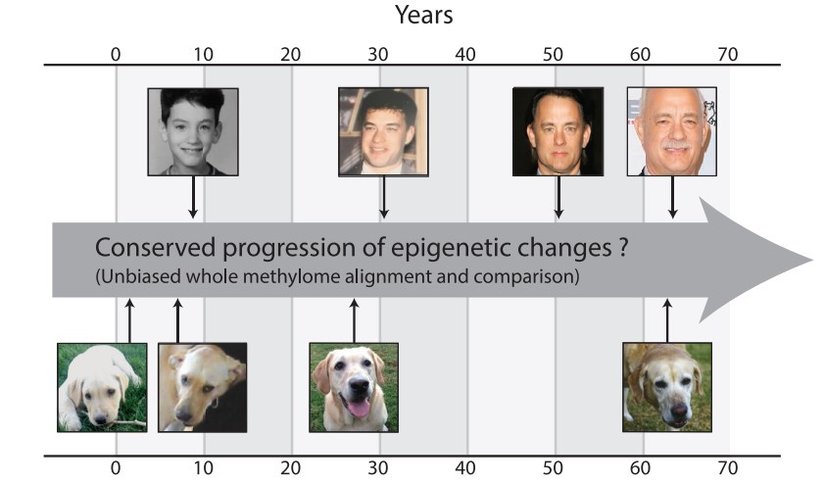 Researchers from the University of California, San Diego School of Medicine looked at methyl groups in the canine and human genomes and came up with these results. Some epigenetic alterations occur in the genomes of living organisms as they age. The rise in methyl groups is the first of them. As a result, we can assess a living thing's aging rate and more clearly discern distinct phases of development by looking at the methyl groups. Cross-species comparisons could also be feasible, as this comment illustrates!