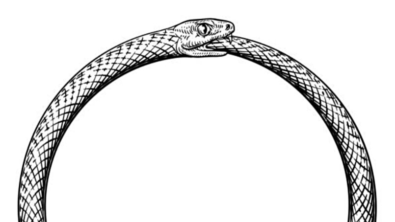 Bir zamanlar yazdığım ve sonradan sildiğim, İkinci El Hayat isimli kitabımda Edim vardı. Yazdığım her sayfada, Edim’in yaşadığı her olayda kendi kuyruğunu yiyen bir yılana çıkıyordu tüm sonuçlar. Kitap da böyle bitmişti zaten. Neyse. Başkaları bu sembolü ne için kullanmış diye daha sonradan araştırdığımda, ki sembol ouroboros olarak biliniyormuş, bu sembolü kimilerinin sonsuzluğu, kimilerinin ise yeniden doğuşu temsil etmek için kullandığını öğrendim. Edim’de ne sonsuzluk ne de yeniden doğuş temsil edilmişti.