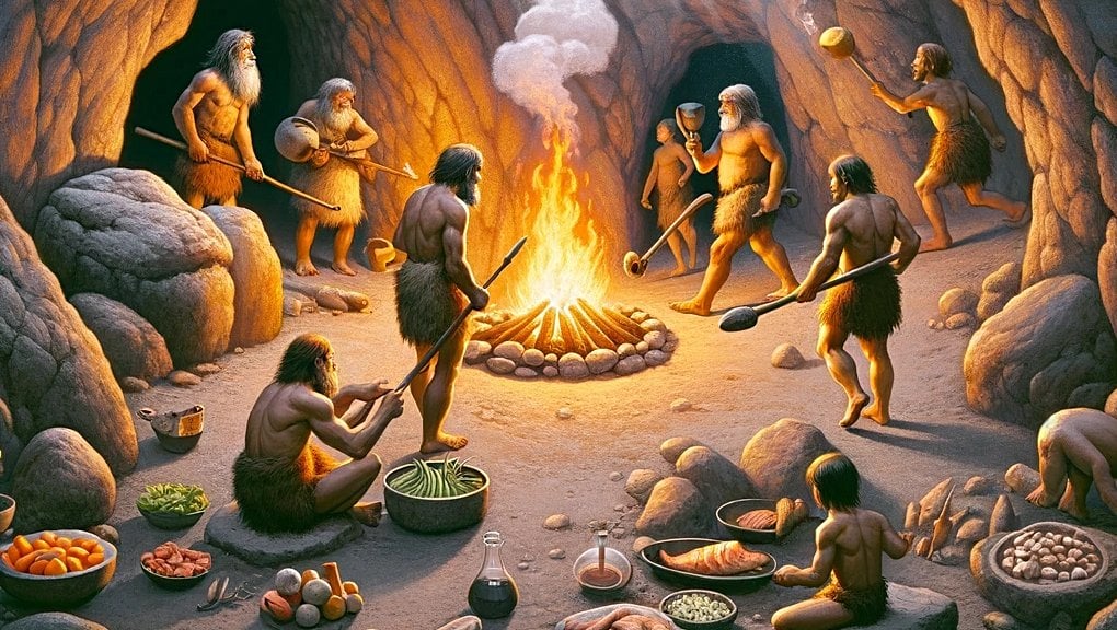 Bu görsel, pişirme ve yiyecek hazırlama tekniklerinin evrimsel süreçteki önemini ve bunların insan fizyolojisine olan etkilerini açıkça ortaya koymaktadır.