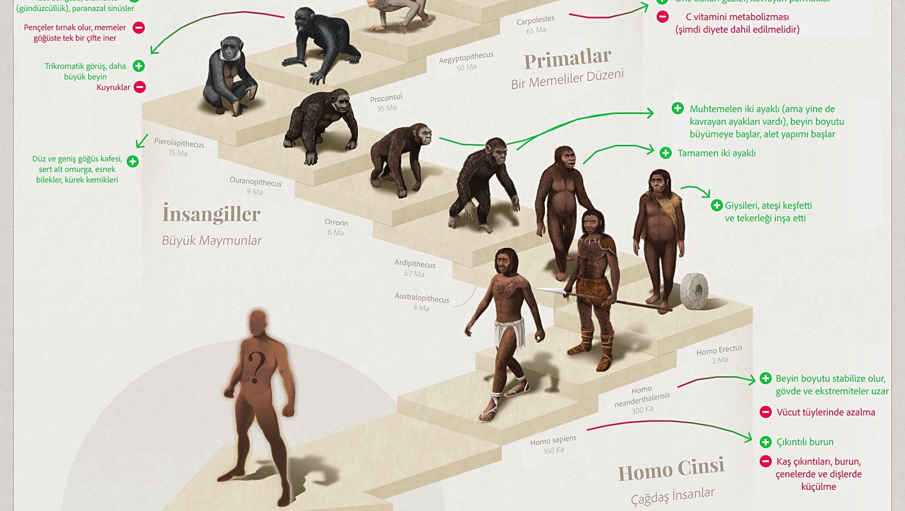 İnsan evriminin hikayesi, milyonlarca yıl boyunca kesintisiz bir zincirle geriye uzanan büyüleyici bir hikayedir.