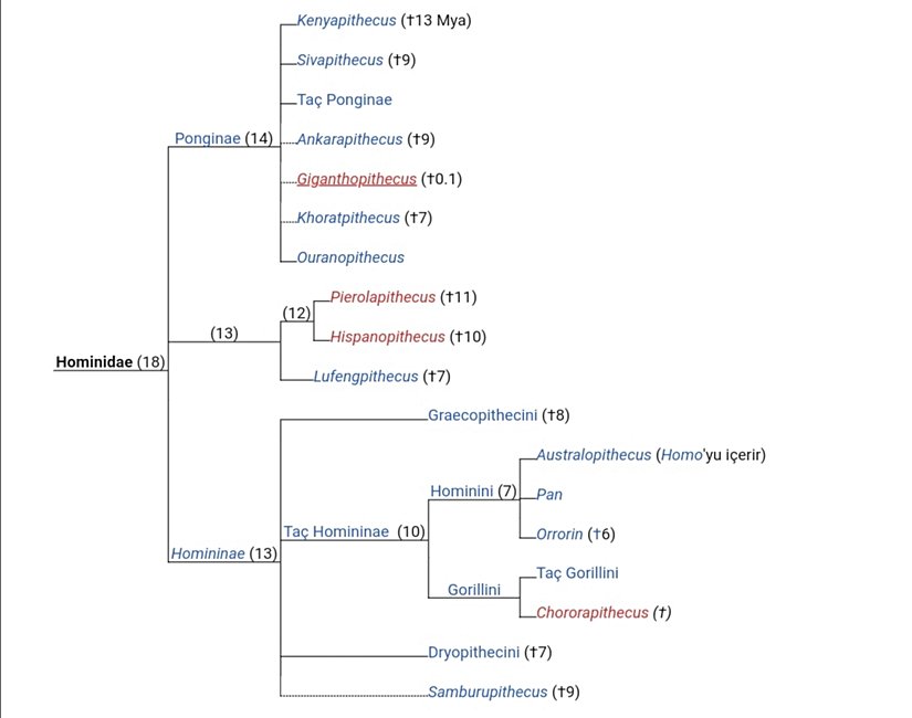 Soyu tükenmiş hominidlerin gösterildiği bir görsel: